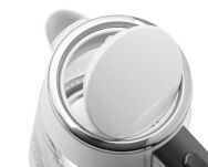 WK 5860 to bezprzewodowy czajnik, który przypadnie do gustu każdemu, kto ceni nowoczesny design i funkcjonalność. To, co wyróżnia ten model, to wykorzystanie trwałego i odpornego na zabrudzenia szkła , którego dopełnieniem są białe elementy wykonane z wysokiej jakości tworzywa sztucznego oraz aluminum. Moc maksymalna 2400 W oraz płaska grzałka płytowa pozwalają na szybkie zagotowanie wody. Atrakcyjność czajnika zwiększa też funkcja automatycznego wyłączania oraz zabezpieczenie przed włączeniem bez wody.