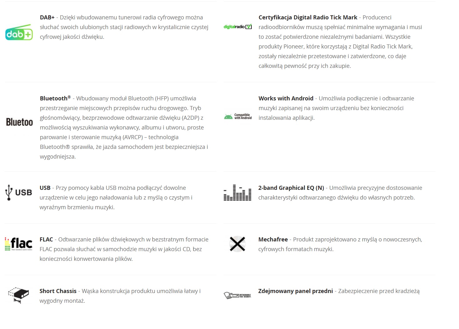 • Pioneer MVH-330DAB  Odbiornik o rozmiarze 1 DIN z radiem cyfrowym DAB/DAB+ BLUETOOTH USB ANDROID